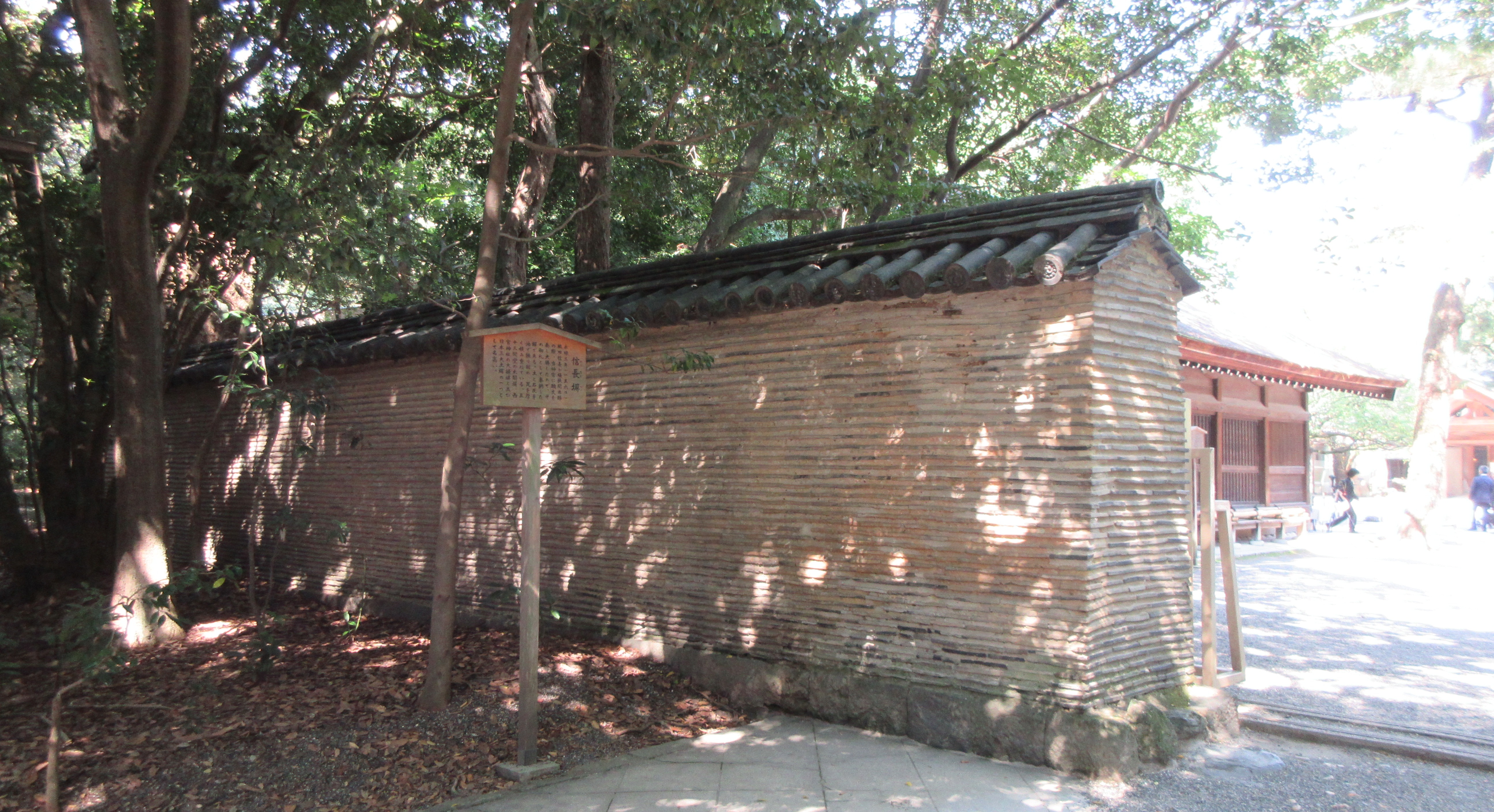 古墳は階段を上がった先にあります。周りが垣で囲まれており、中には入れません。木が茂っており、断夫山古墳のような堀も無いので、わかりづらいですが、中をのぞくと、丘のように高くなっており、古墳であることがわかります(垣が無く、古墳であると言われなければ、わからないだろうけど)。