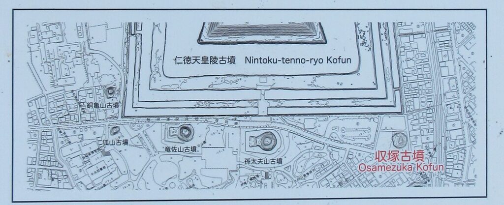 ※令和7年9月7日、大仙古墳の周辺にある小さい古墳(陪冢=ばいちょう)に収塚古墳を追記しました。