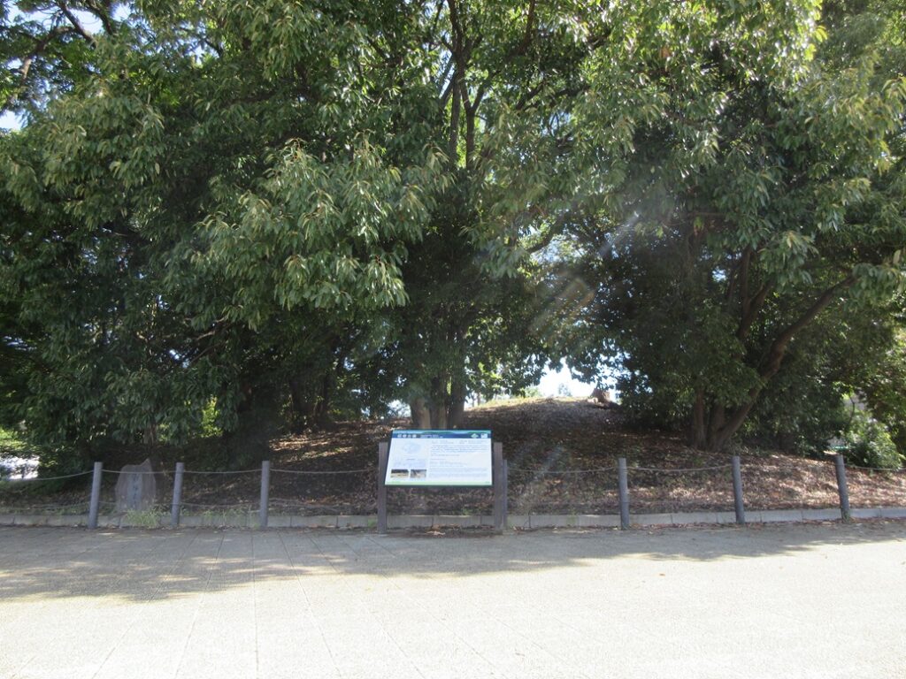 現在は埋められていますが、元々は周囲に幅5m、深さ1.8mの周濠がありました。この周濠から見つかった埴輪から、大仙古墳とほぼ同時期の5世紀中頃に造られた古墳と考えられています。同時期であることや大仙古墳に近い位置にあることが陪冢とされている理由です。