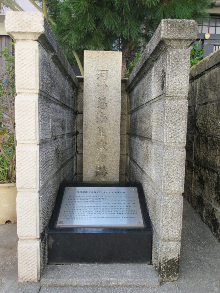 慧海の生家跡は住宅地の中にあります。今ではその面影はありません。生家跡には石碑がありますが、住宅と住宅の間に僅かなスペースがあり、そこに石碑があります。注意していないと見落とします。