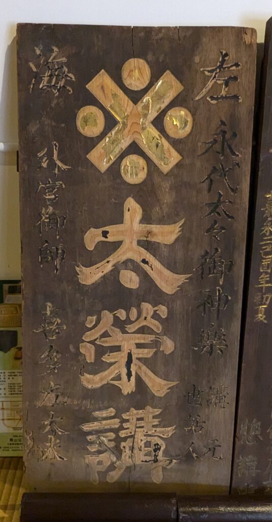 例えば、写真の一番左の「太栄講」という看板は、この宿が太栄講の定宿であることを示しています。見にくいですが、看板の左下には「外宮御師 喜多左太夫」とも書かれています。