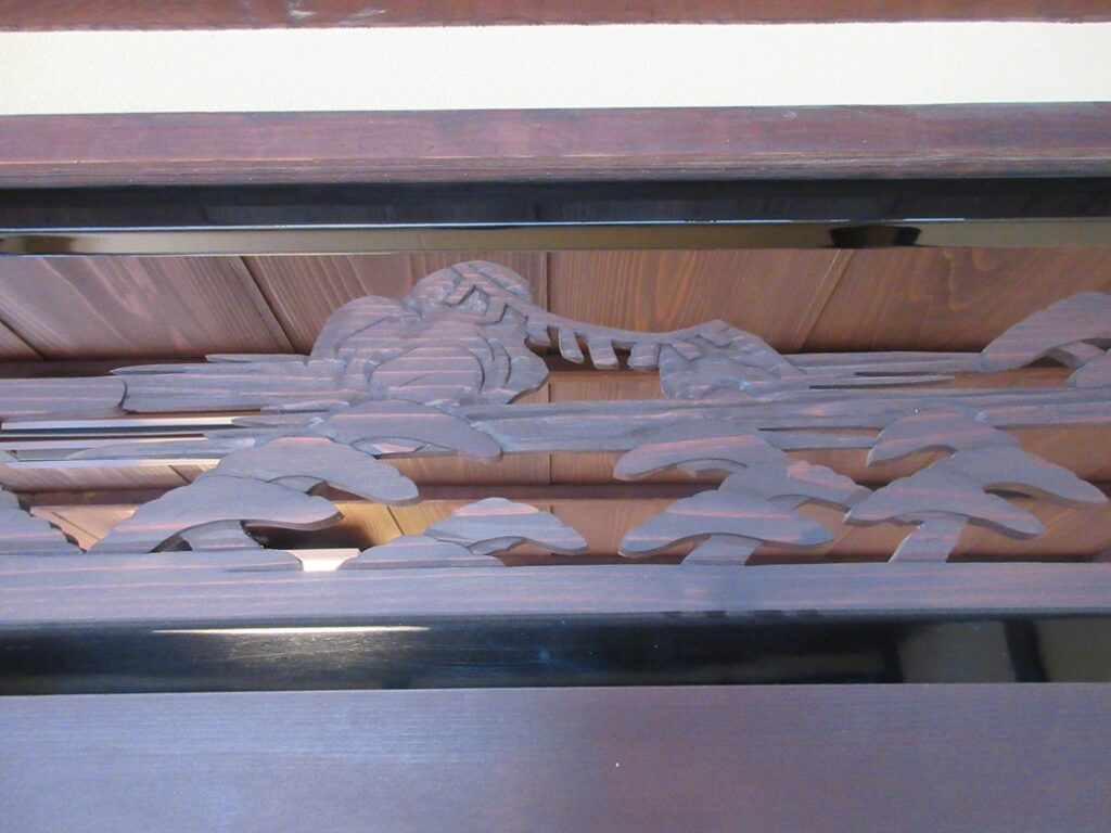 2階の欄間には様々な彫刻があり、細部を見ると、かなり凝って作られています。