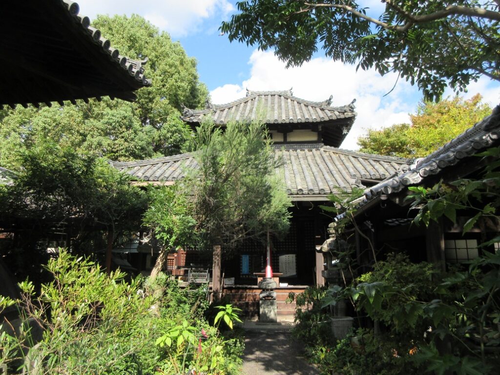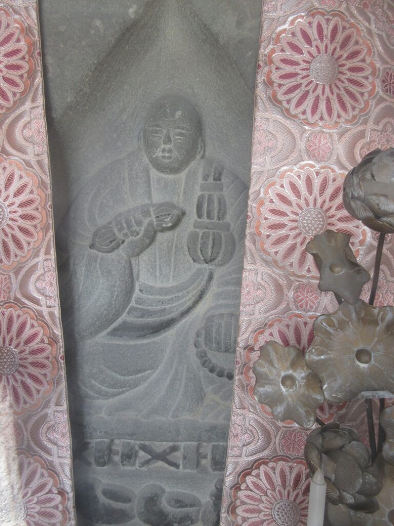 畝傍高校から元の道へ戻ります。途中、小道の南側には大師堂があります。中には石造の弘法大師像があります。
